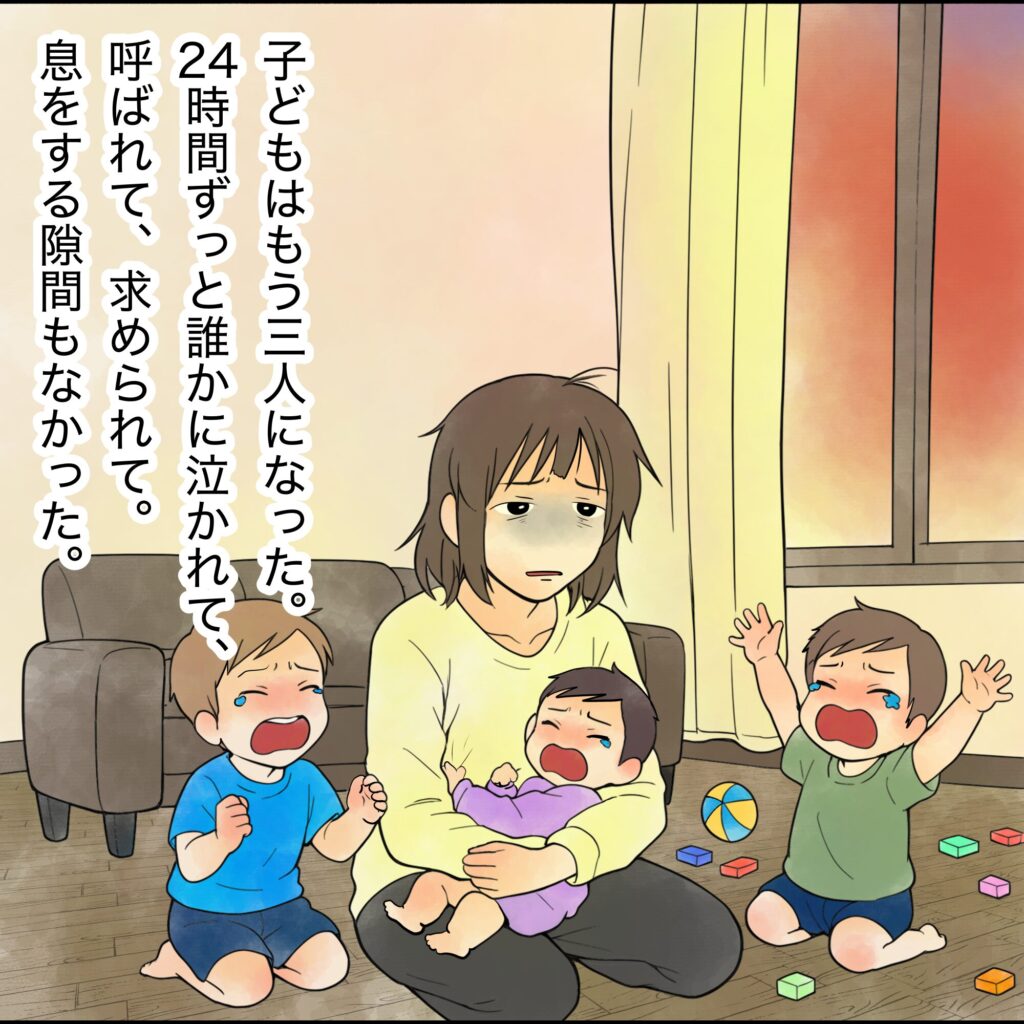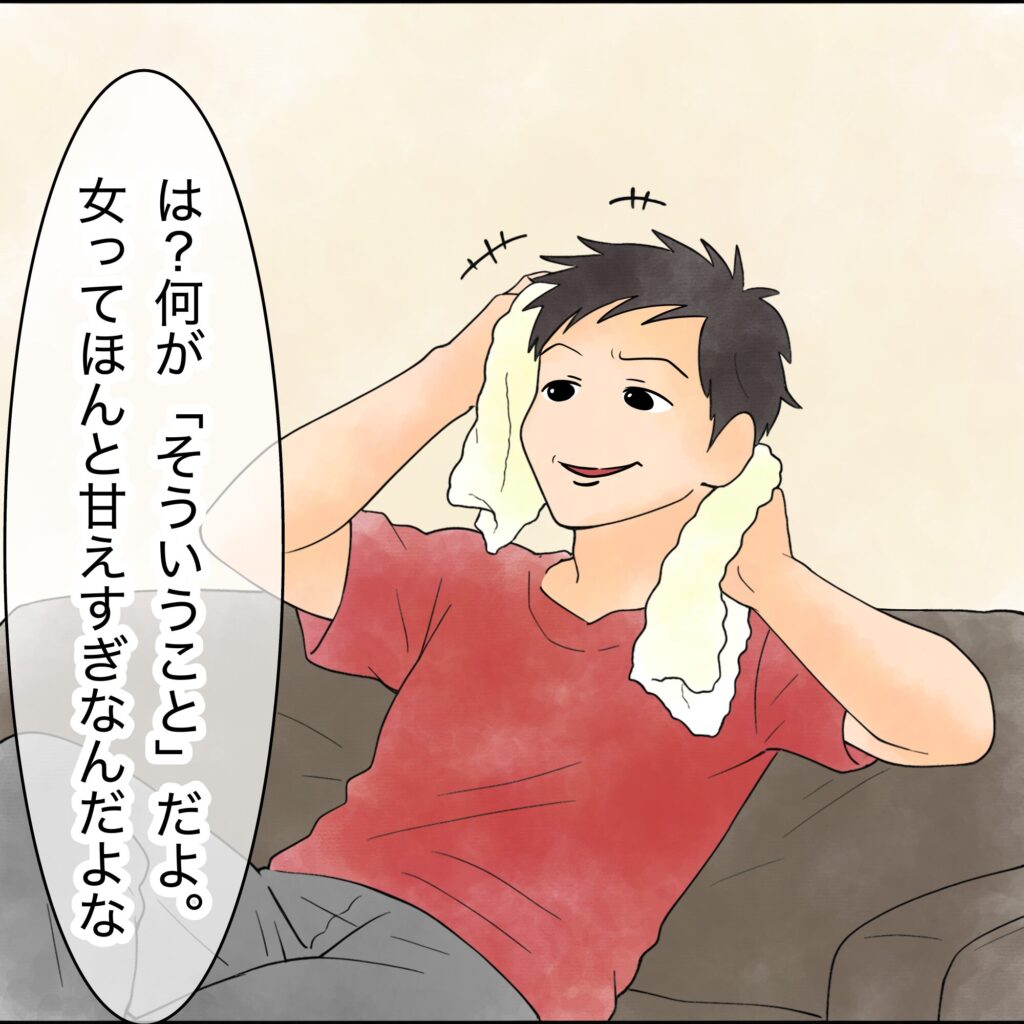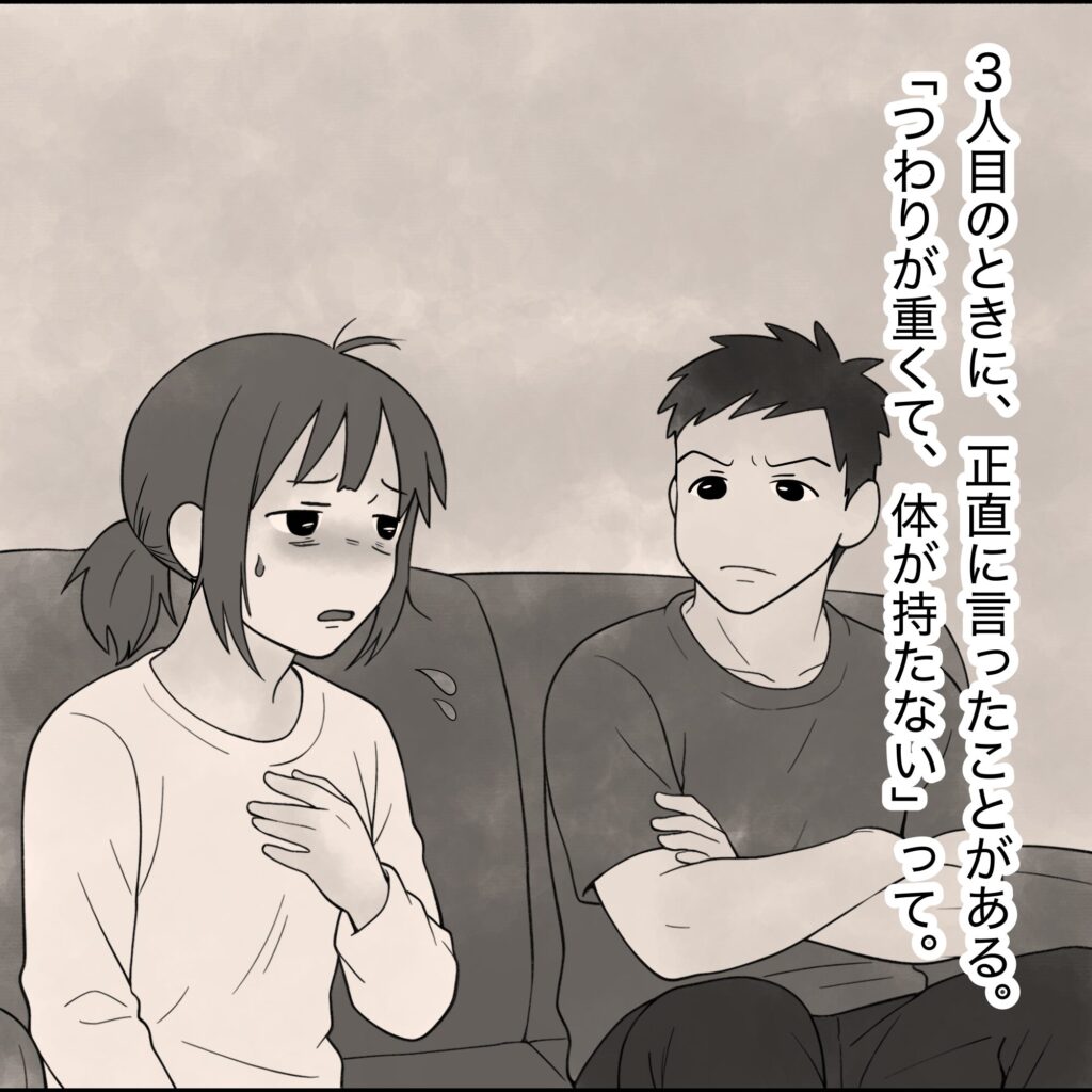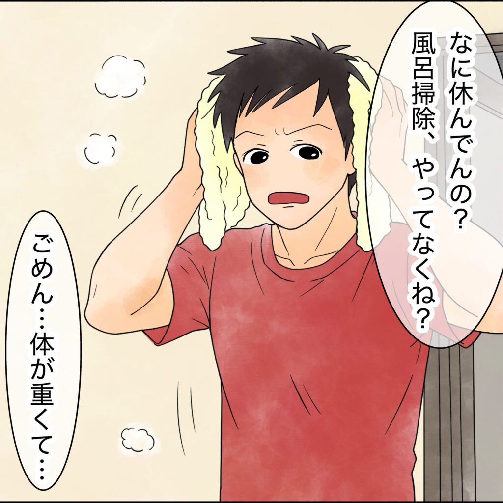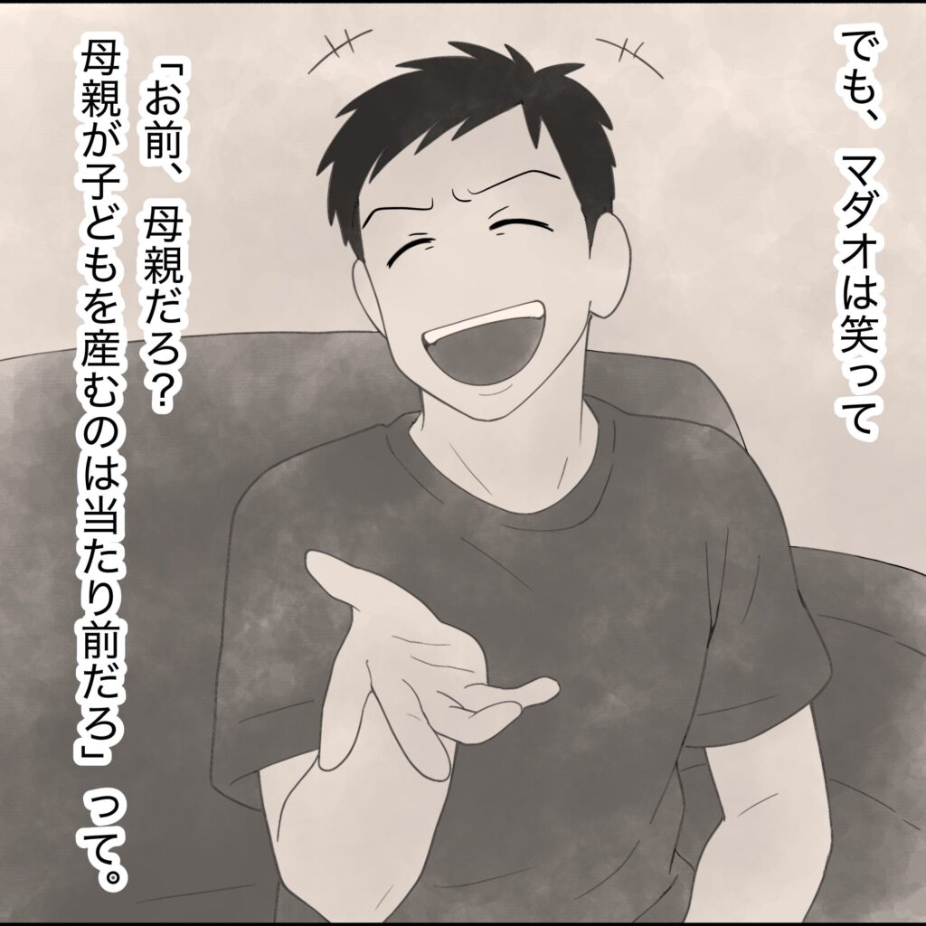 妻の体調を気遣う気配は全くなく、「母親だから当たり前」スタンスの夫。