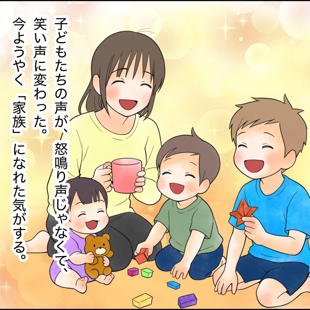 夫と離れて子供達や自分に笑顔が戻り本当の幸せに気づけたエミ。