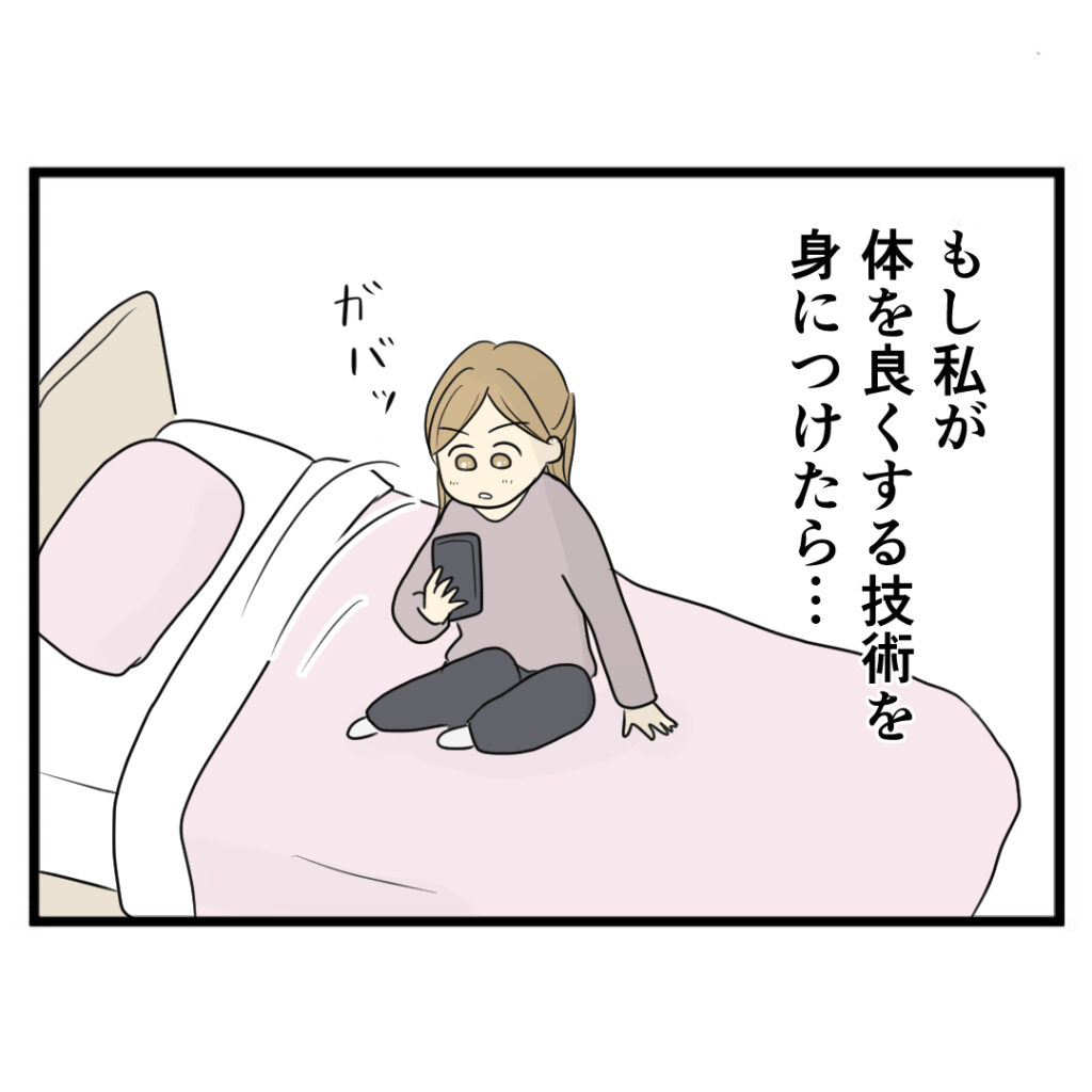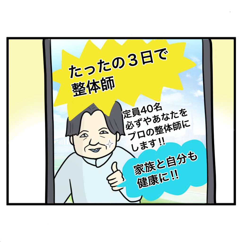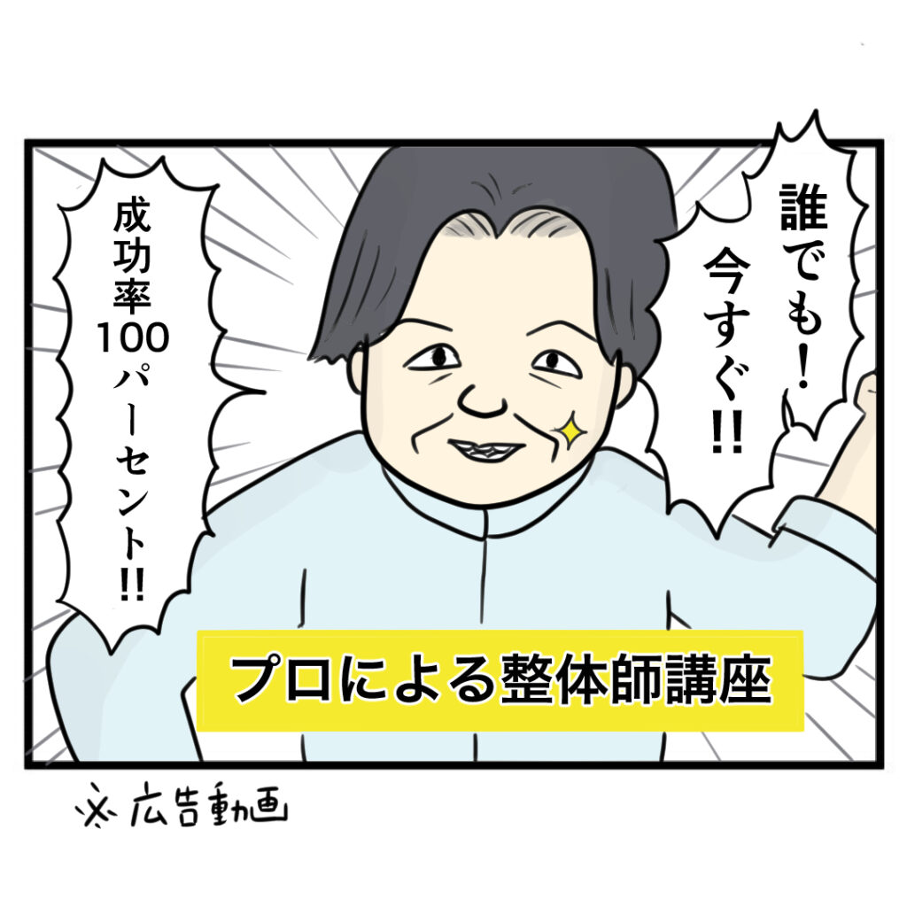 広告動画で整体講座を知り、受けたいと思いつつ高額なため躊躇するサチエ。