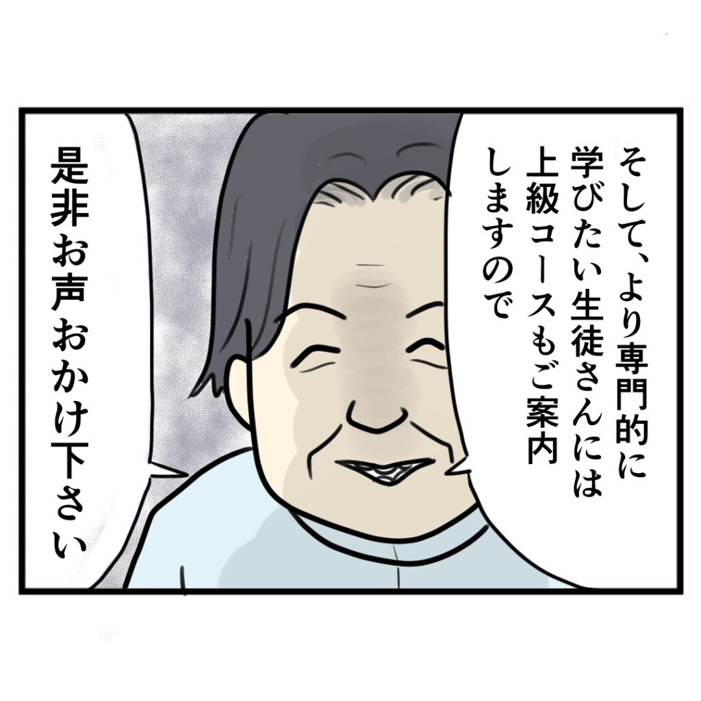 迷った末、整体講座を受けることのにしたサチエ。高額なだけに、絶対ものにして見せると決意は固かった。