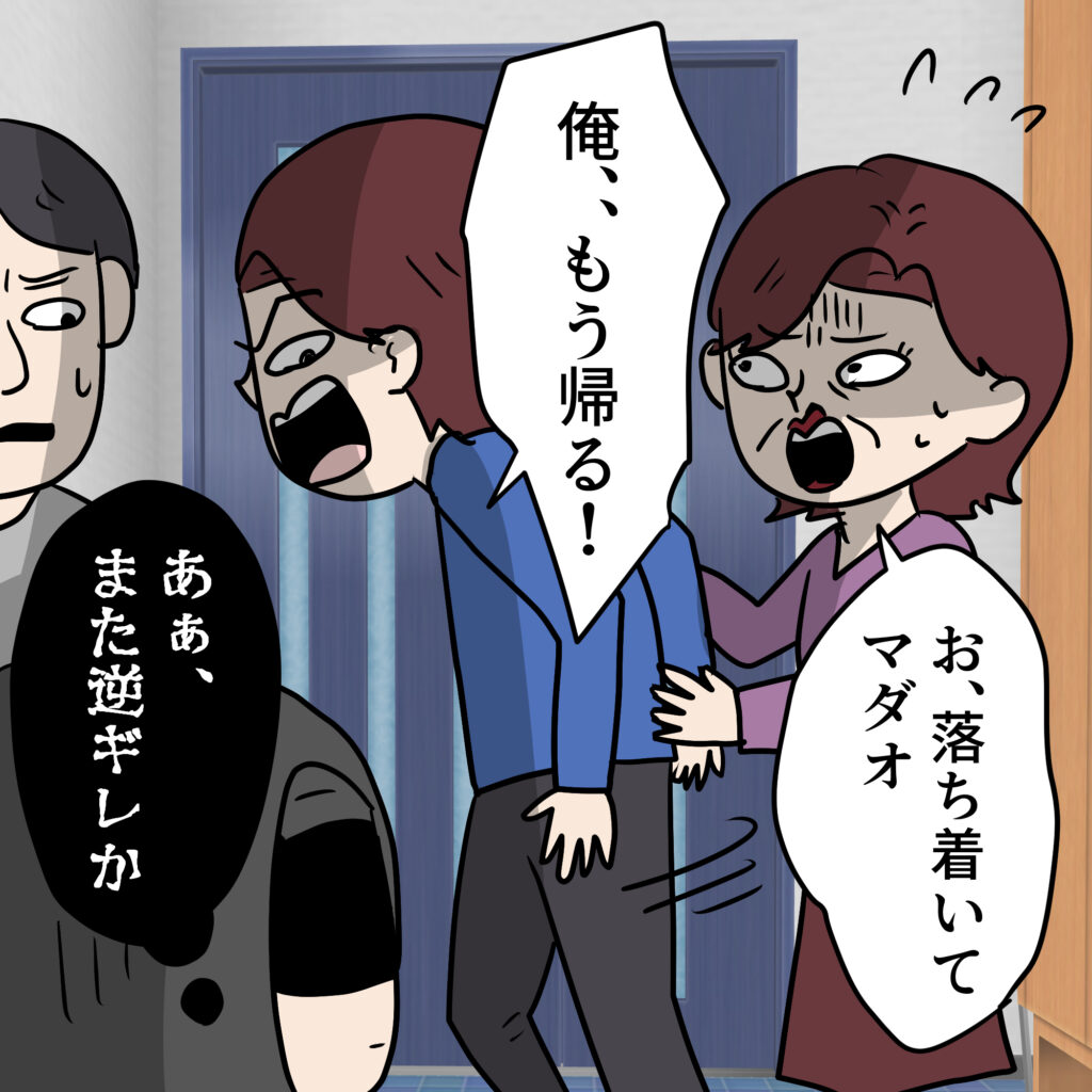 平謝りする義両親の横でマダオの謝罪は口先だけで終いには逆ギレ。