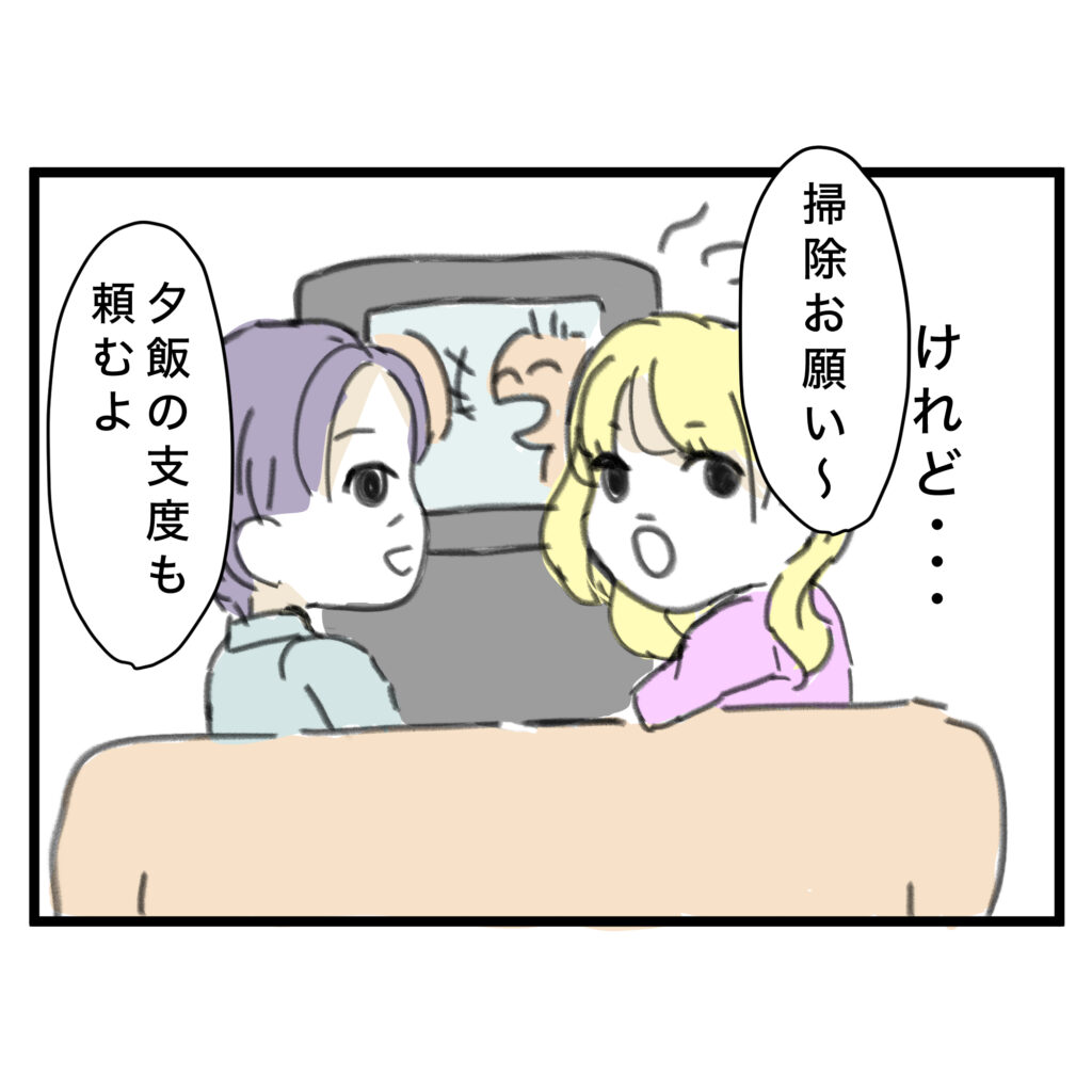 仕事をしているのに掃除や食事の支度、雑用で都合よく扱われる妻。