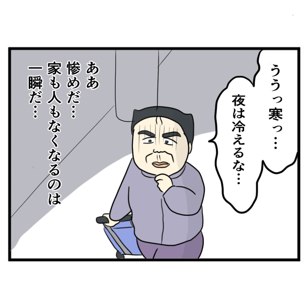 職と家を失い、家族にも見放されたすけおはようやく今までの行いを反省し始める。