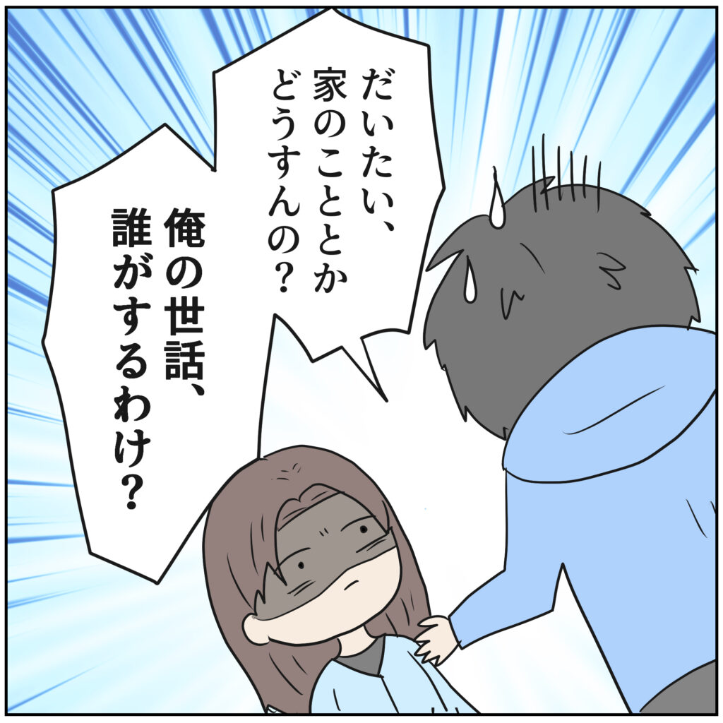 限界を超えた妻が離婚を切り出すと自分の世話は誰がするんだとどこまでも自己中な夫。