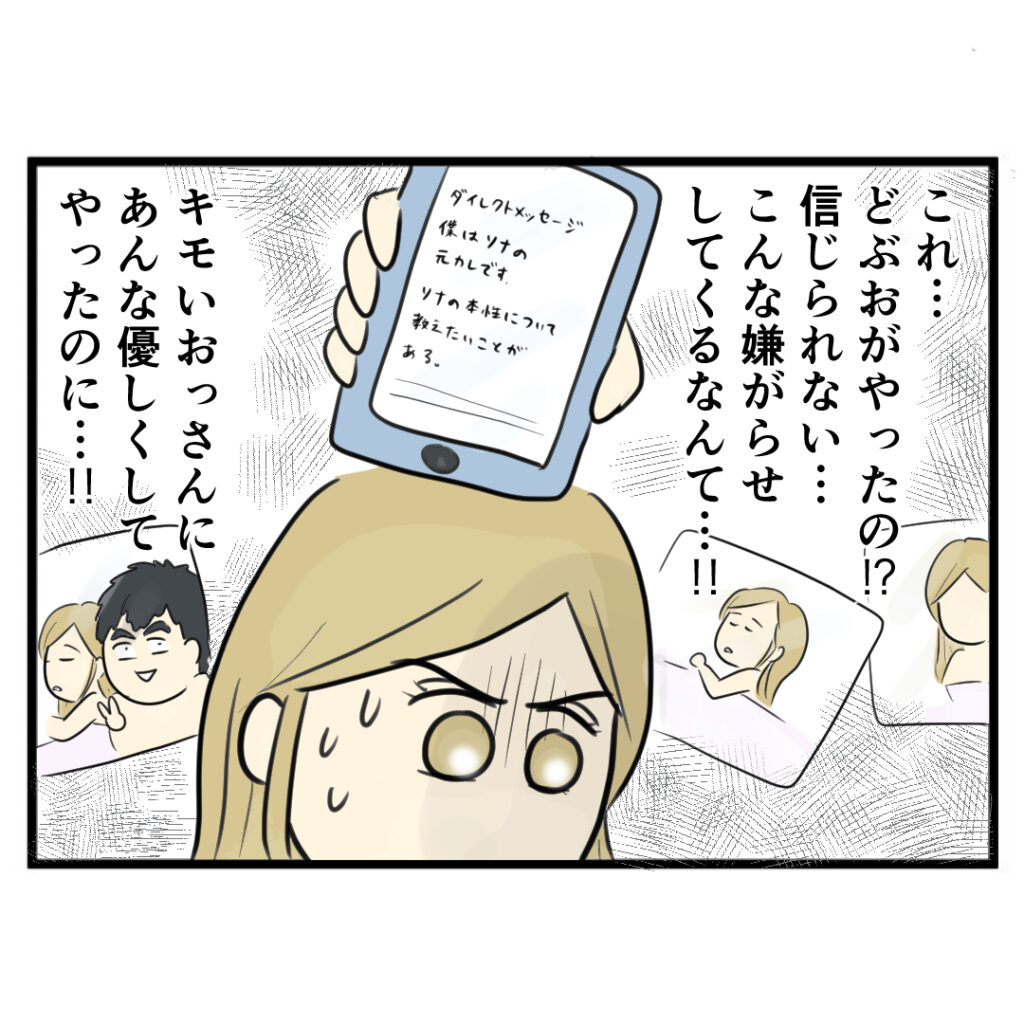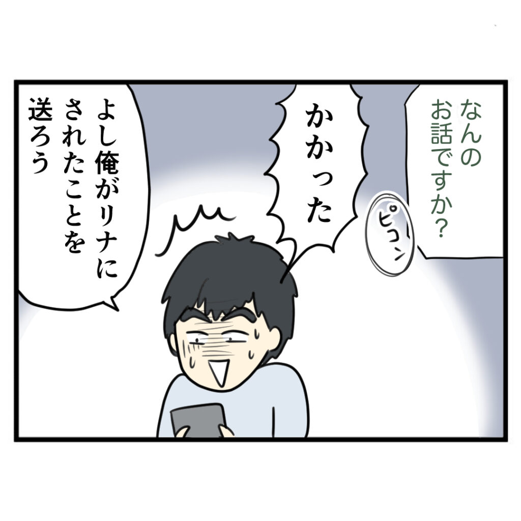 浮気相手の彼氏に連絡し、写真など送りつけるどぶお。