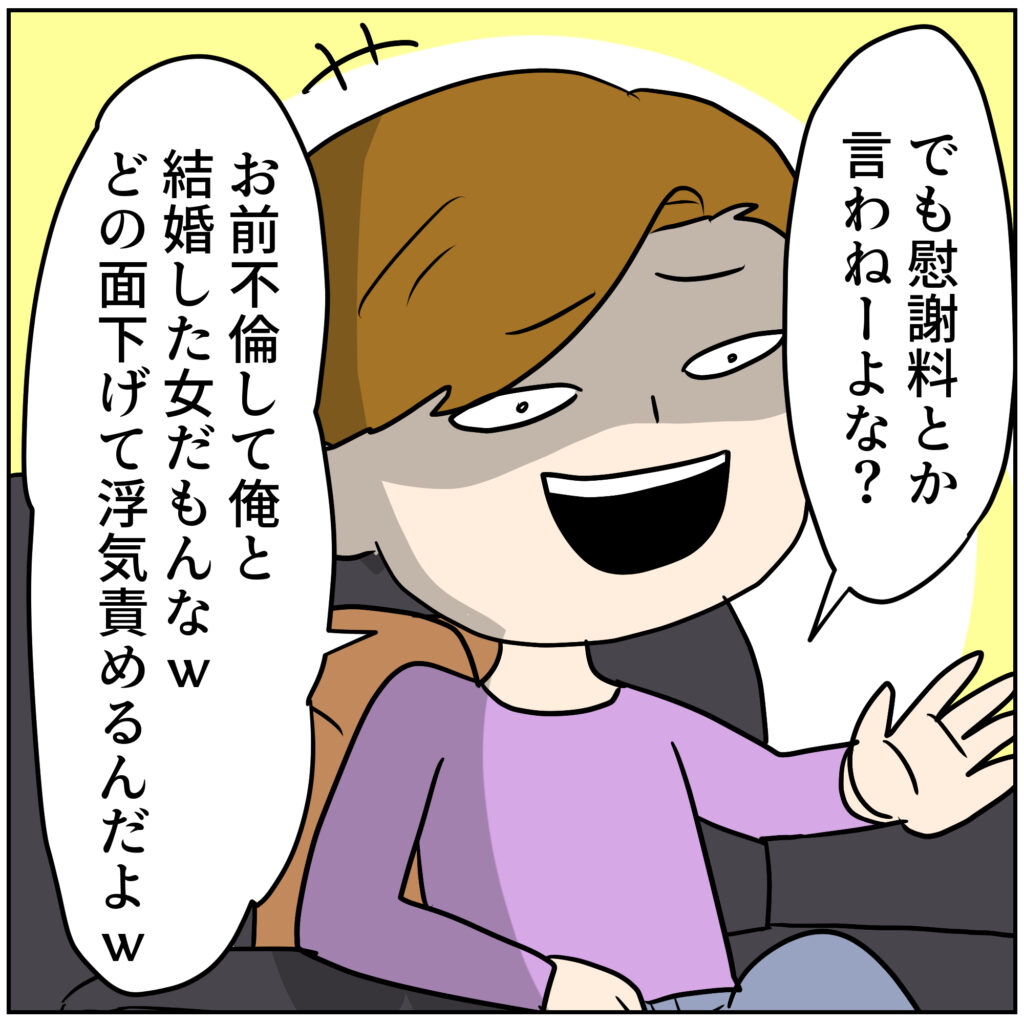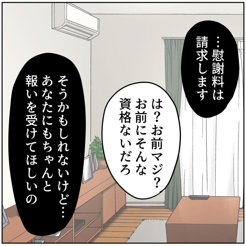 慰謝料の請求には応じないと言うマダオに対し、弁護士を立てて請求したアユミ。