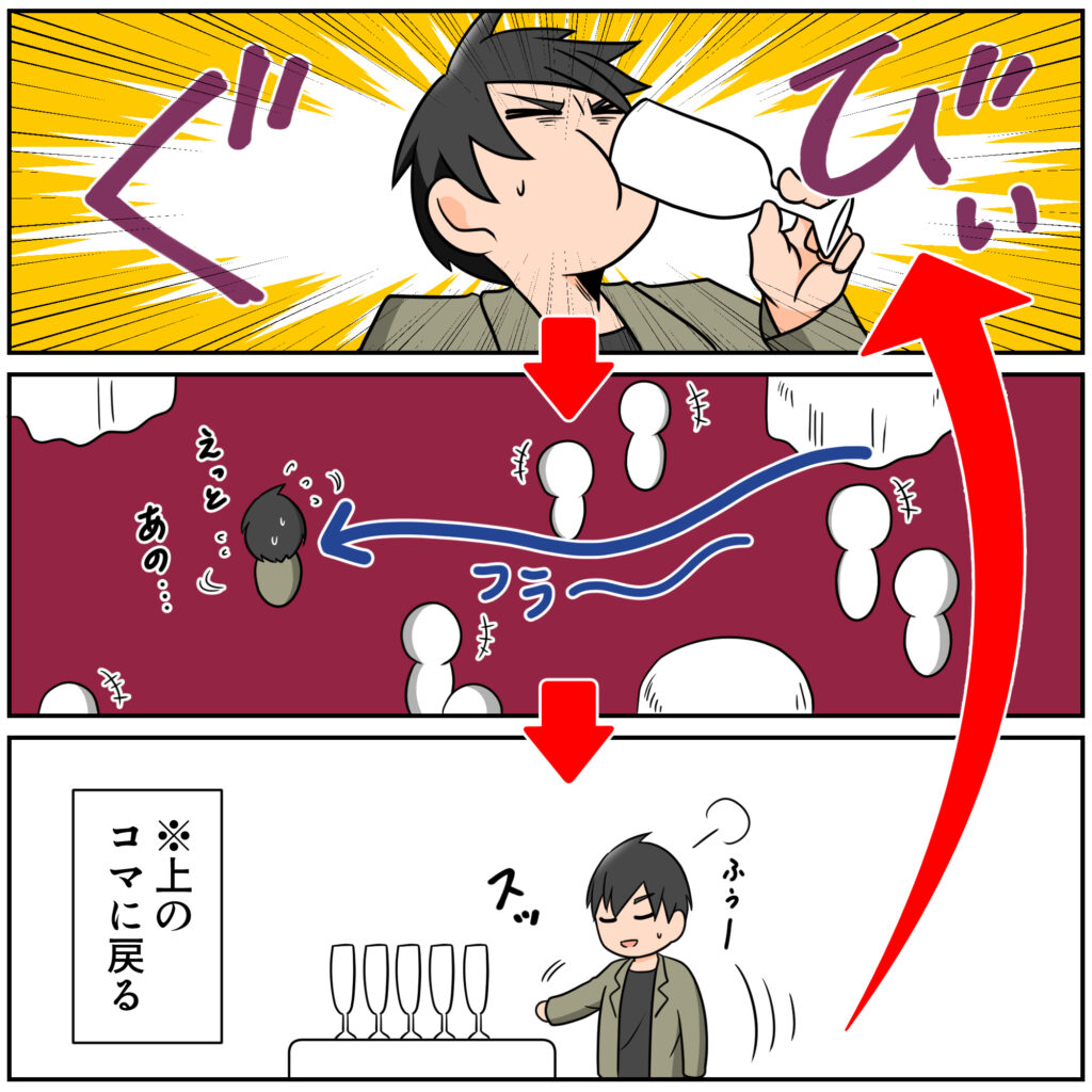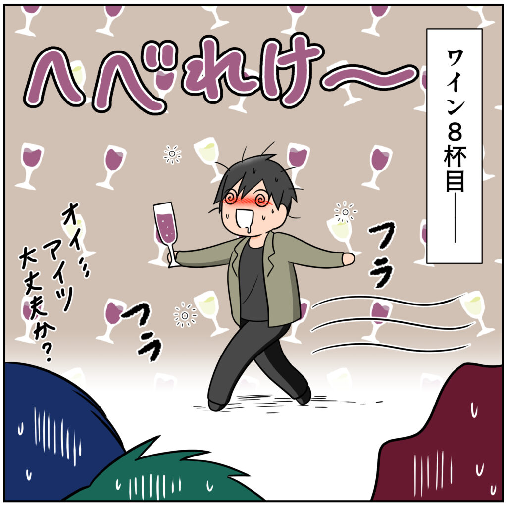 さらに酔っ払ってしまうという主人公。なんとも空回り…。