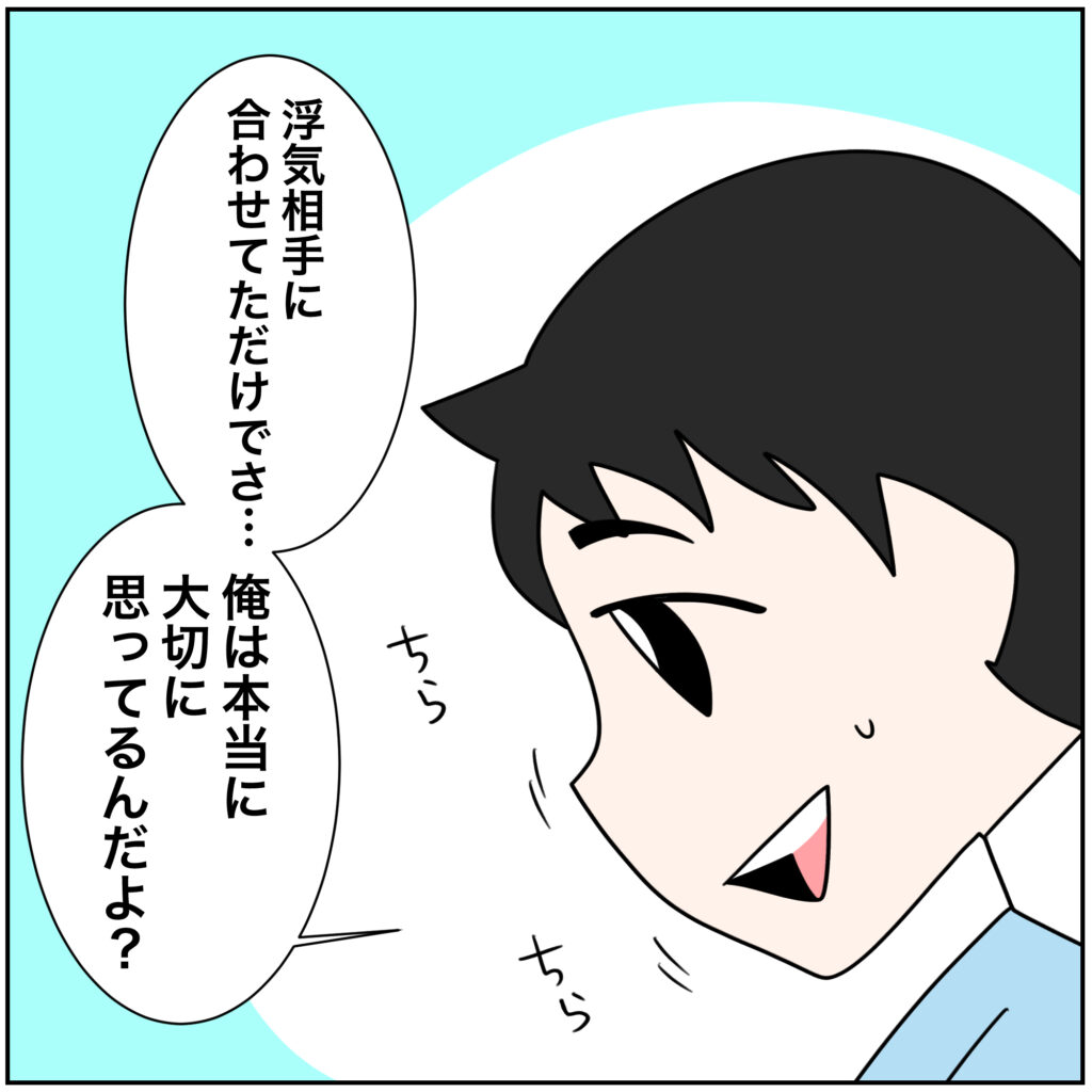 浮気相手とのやり取りの証拠写真を見せると急に弱気になる夫。